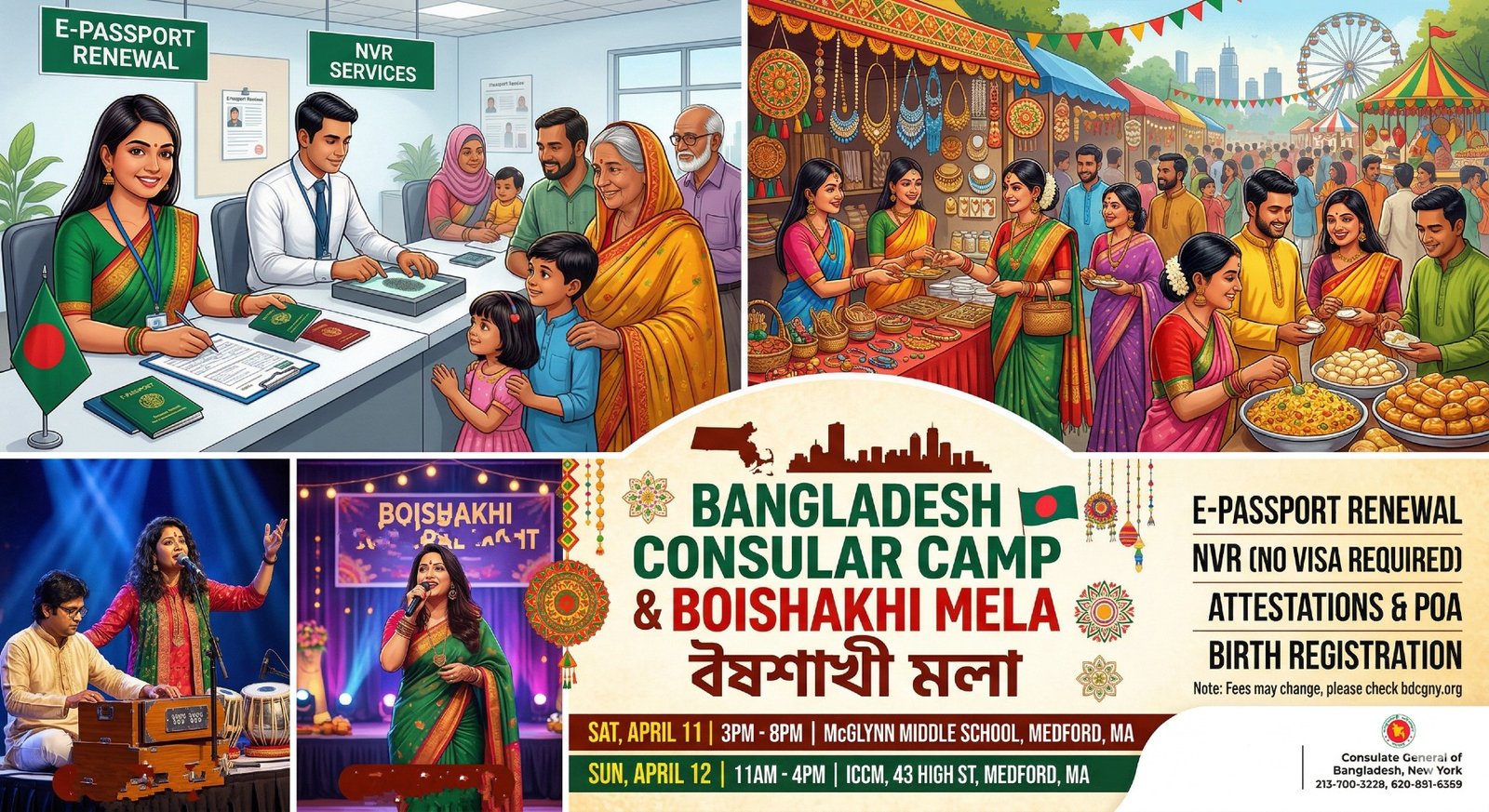 নিজস্ব প্রতিবেদক, বোস্টন | ১০ এপ্রিল, ২০২৬ বাংলাদেশ অ্যাসোসিয়েশন অফ নিউ ইংল্যান্ড (বেইন)-এর কার্যকরী পরিষদ (২০২৫-২০২৬)-এর উদ্যোগে আগামী ১১ ও ১২ এপ্রিল (শনিবার ও রবিবার)…
